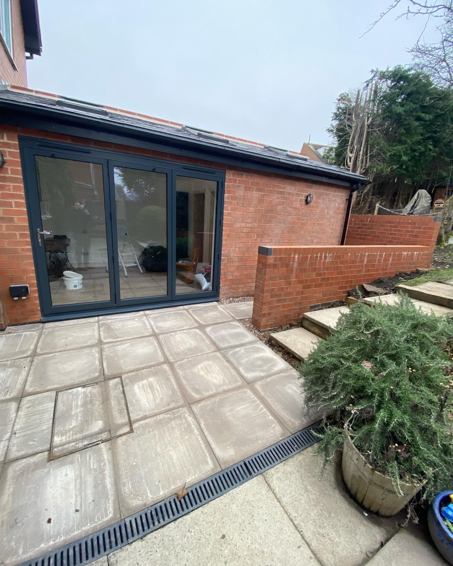 Externally we installed the aco drainage, retaining walls and complete with porcelain paving.