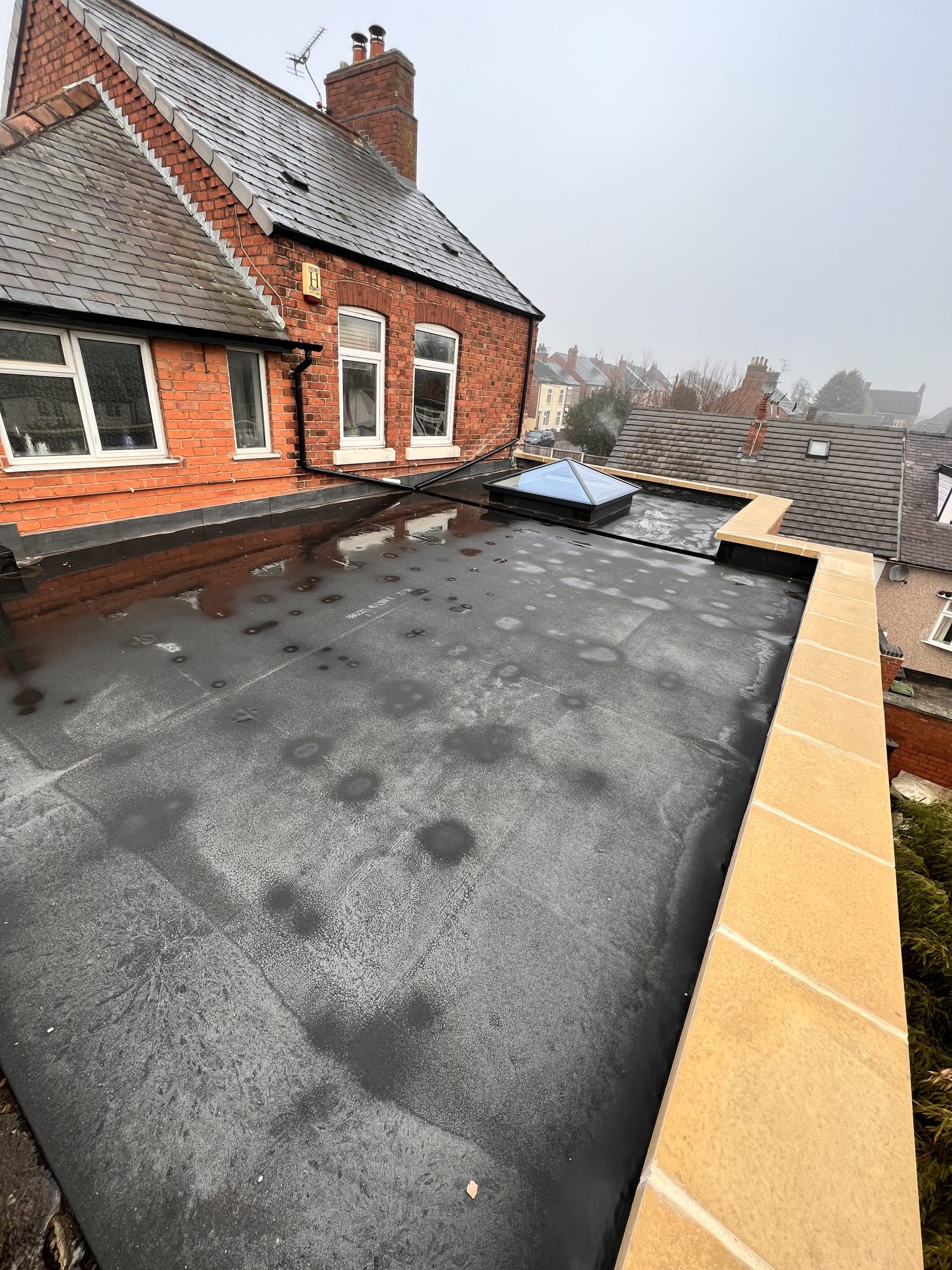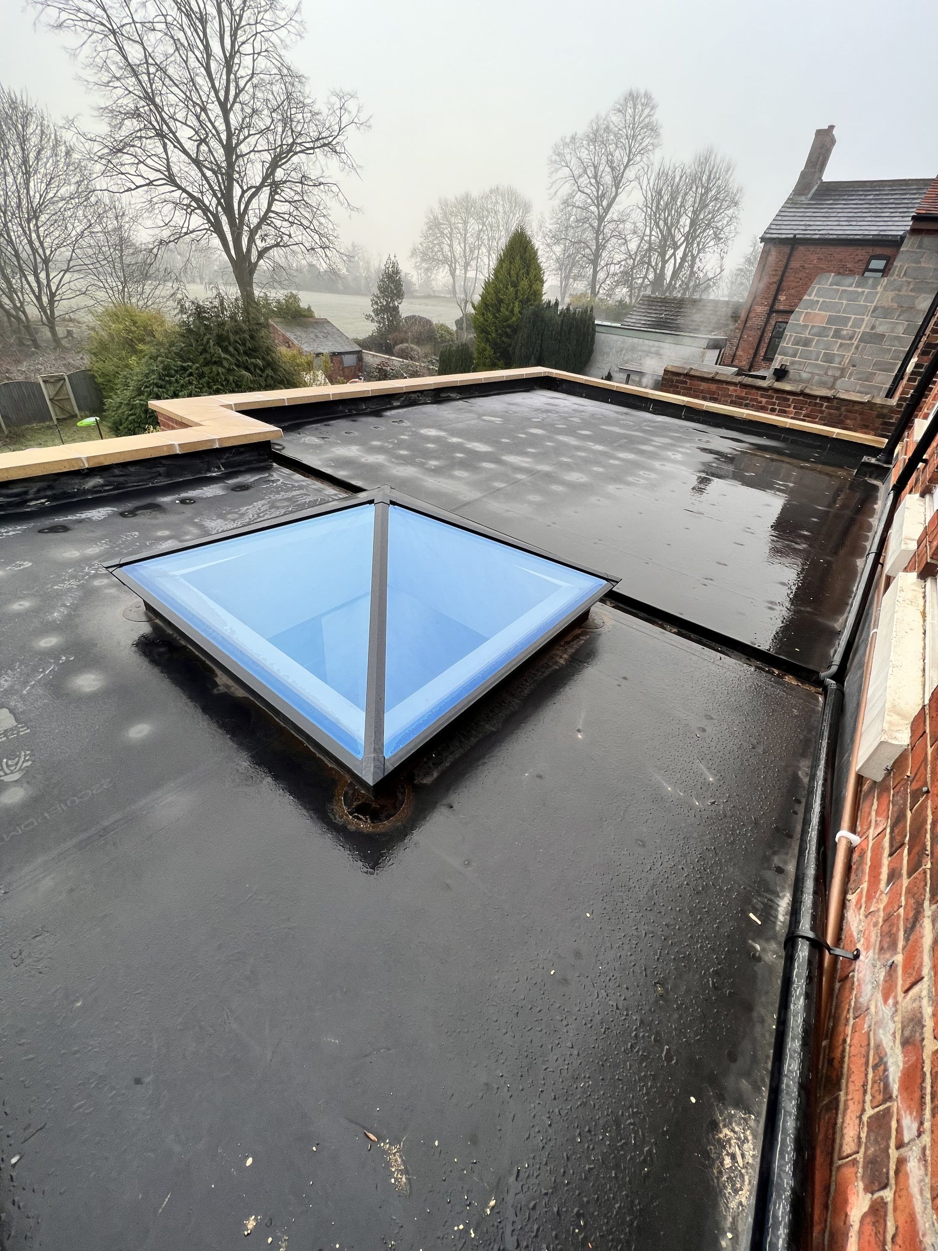 The roof is a flat epdm system with an electrical opening triple glazed flat roof light.