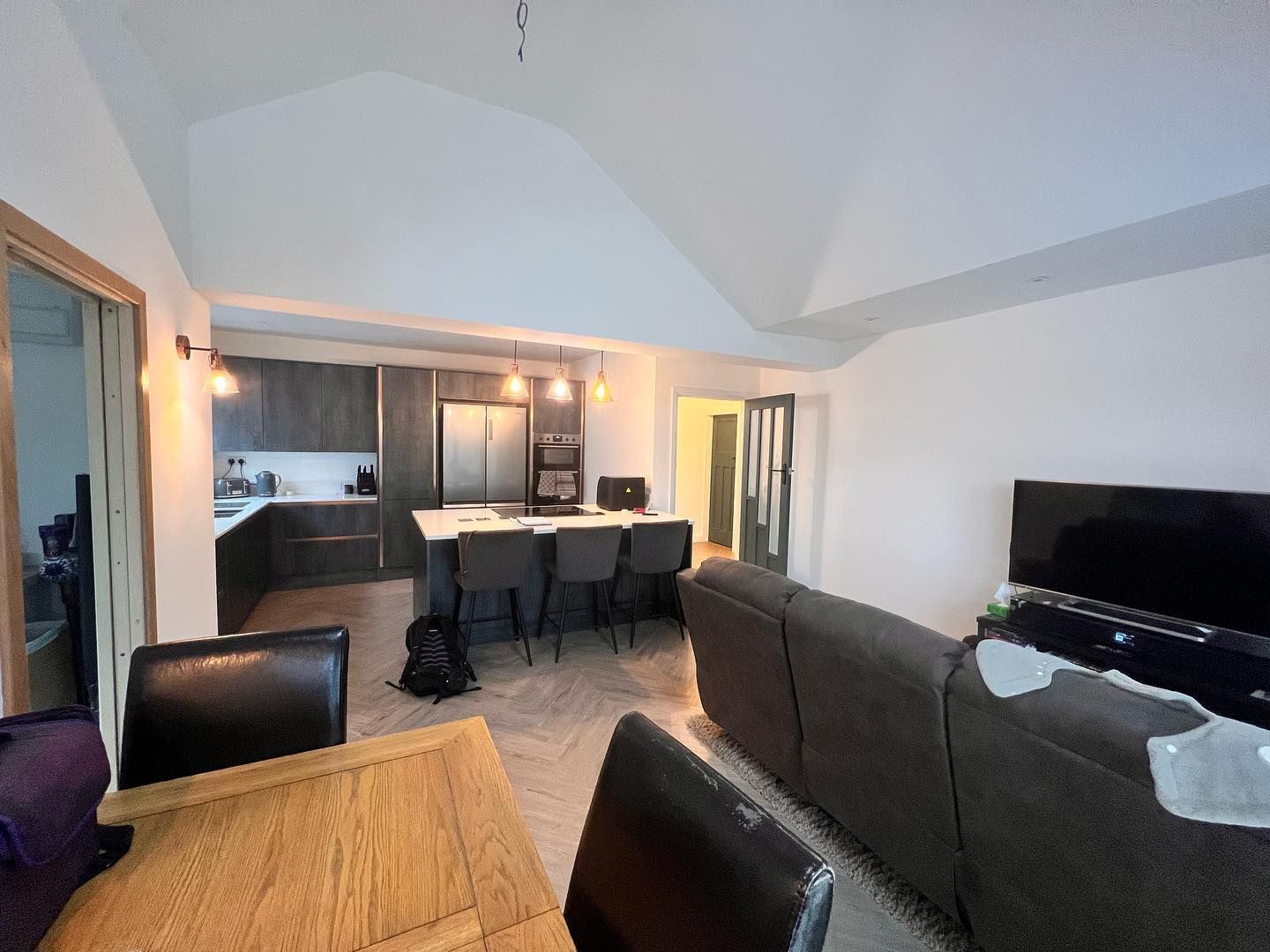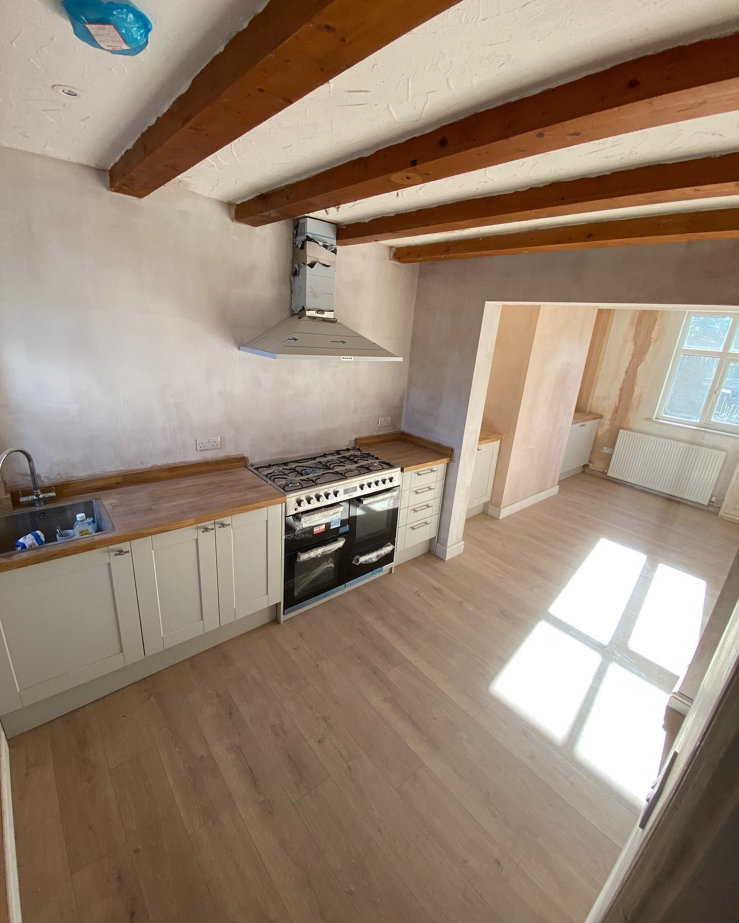 The extension was to include some large steels to open up the building to the extended kitchen and dining area, a further bedroom and utility room. This comes complete with a fully fitted kitchen and appliances, vaulted ceilings, bifolding doors and a #veluxwindow to the roof area.